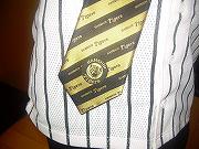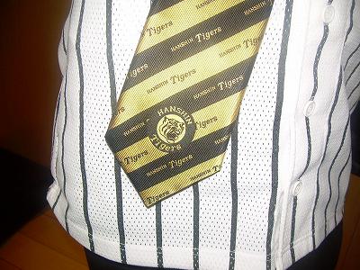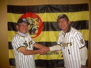 新会長に選出されたのは西脇さん(写真左)、着けている虎縞ユニフォームは、こちら(インドネシア)で作成されたものとか。その他、球団旗、ネクタイなどさまざまな阪神タイガースグッズをご所有です。まさしく虎キチですね。
