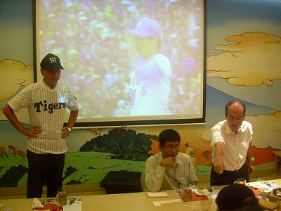 10日の夜、ミッドプラザの酒菜にて、阪神タイガースファンの集い(ジャカルタ猛虎会)が行われました。この日は、山中会長(写真右)の本帰国に伴う、新会長の選出・就任式および山中会長の送別会を兼ねたものとなり、少数ながら(約10名が参加)、各自虎キチぶりを堪能する、相変わらずの大盛り上がり宴会となります。