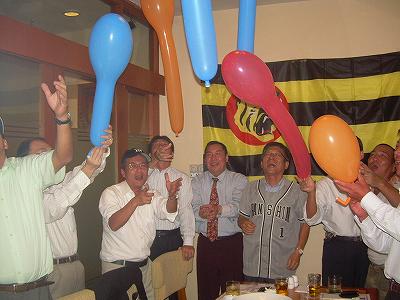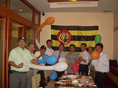 海を越えても遥かインドネシアにやってきても、阪神タイガースファンは怪気炎を吐くのでありました。宴会の締めはもちろん六甲おろしの大合唱&風船飛ばし。よくやるなあ。