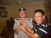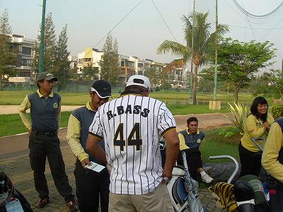 さて優勝は、ジャカルタ猛虎会の実力No1、室原さん。ハンデ13の申告で、グロスが87、ネットが74の優勝です。この室原さん、学生時は球児として甲子園を目指したこともあるという、飛ばし屋。背番号も44で、まさしくジャカルタ猛虎会のバースであります。