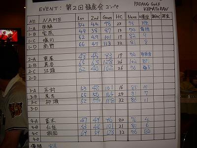 自己申告のハンデが、13〜32とシングルプレイヤーがおらず、また20以下の申告がわずかに4名と、「これって、嘘つきが多いの?それとも見栄を張ってこれ?」と思われるような、低レベル(失礼!)な戦いとなりました。